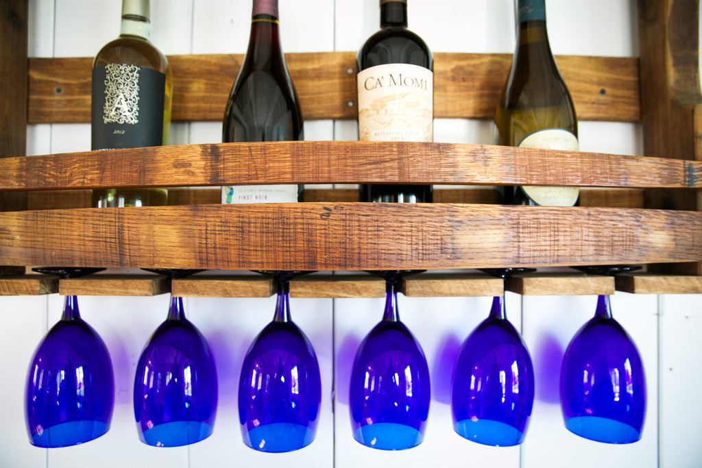 The Napa Wine Rack is one of our original designs, handmade from French Oak wine barrels. The wine staves are sanded down, hand finished, and fit together with great attention to detail - right down to oak dowel plugs used over the screws.